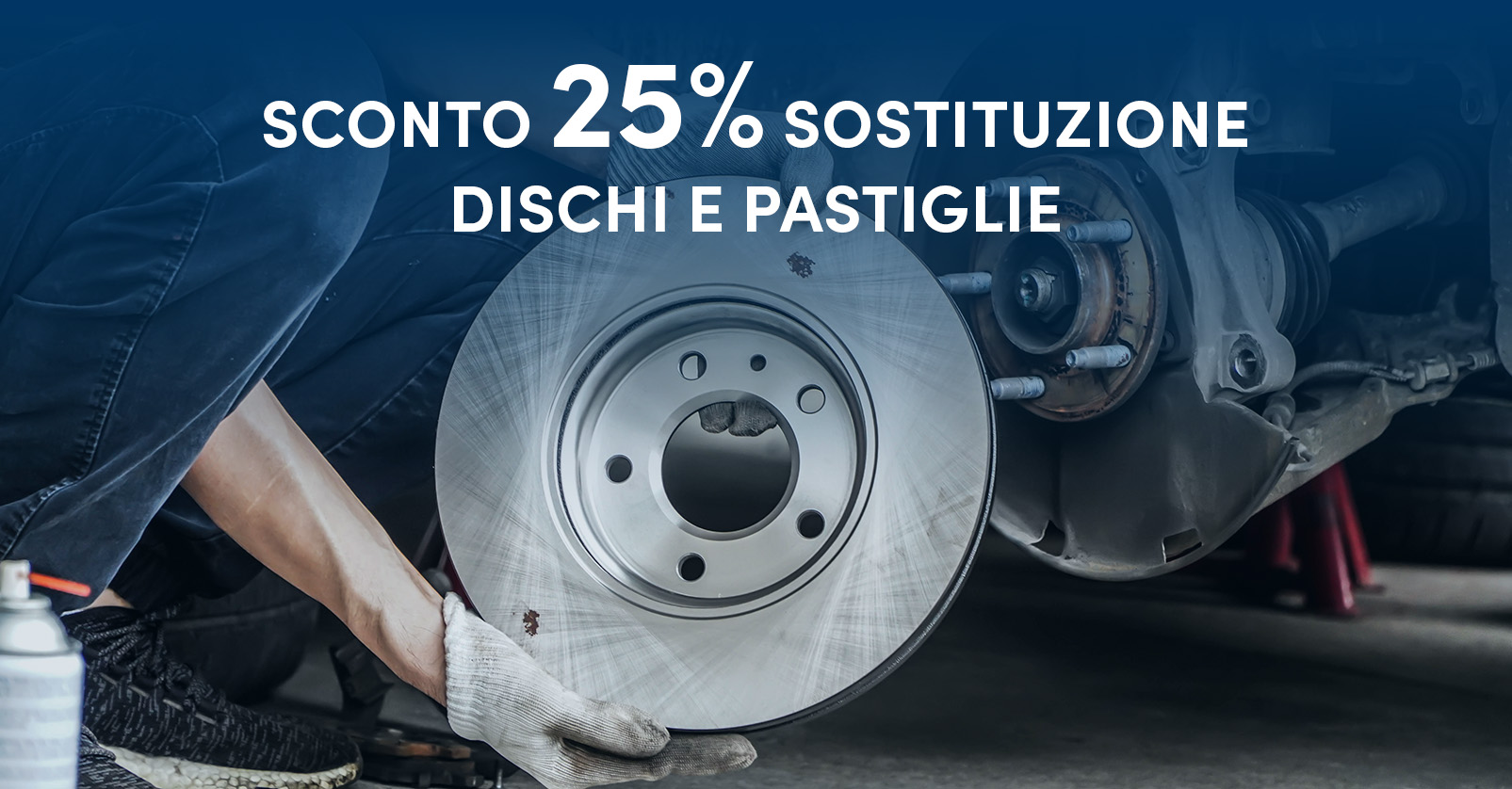 Prenotando il cambio pneumatici hai diritto anche ad uno sconto del 25% sulla sostituzione dischi e pastiglie freno.